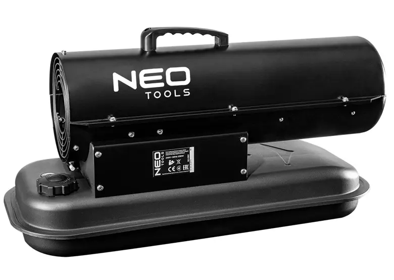 Nagrzewnica Neo Tools 90-080 stanowi przenośne źródło ciepła o wadze 14 kilogram i przepływie 550 metrów sześciennych na godzinę, co przy oferowanej mocy 20kW (przy zużyciu 1,9 litrów ba godzinę) zapewnia bardzo dużą wydajność. Narzędzie wyposażone w kontrolkę sygnalizacji awarii, termostat z przełącznikiem regulacji temperatury, a także w “czujnik płomienia” – odpowiedzialny za odcięcie zasilenia w przypadku wysępienia braku paliwa.