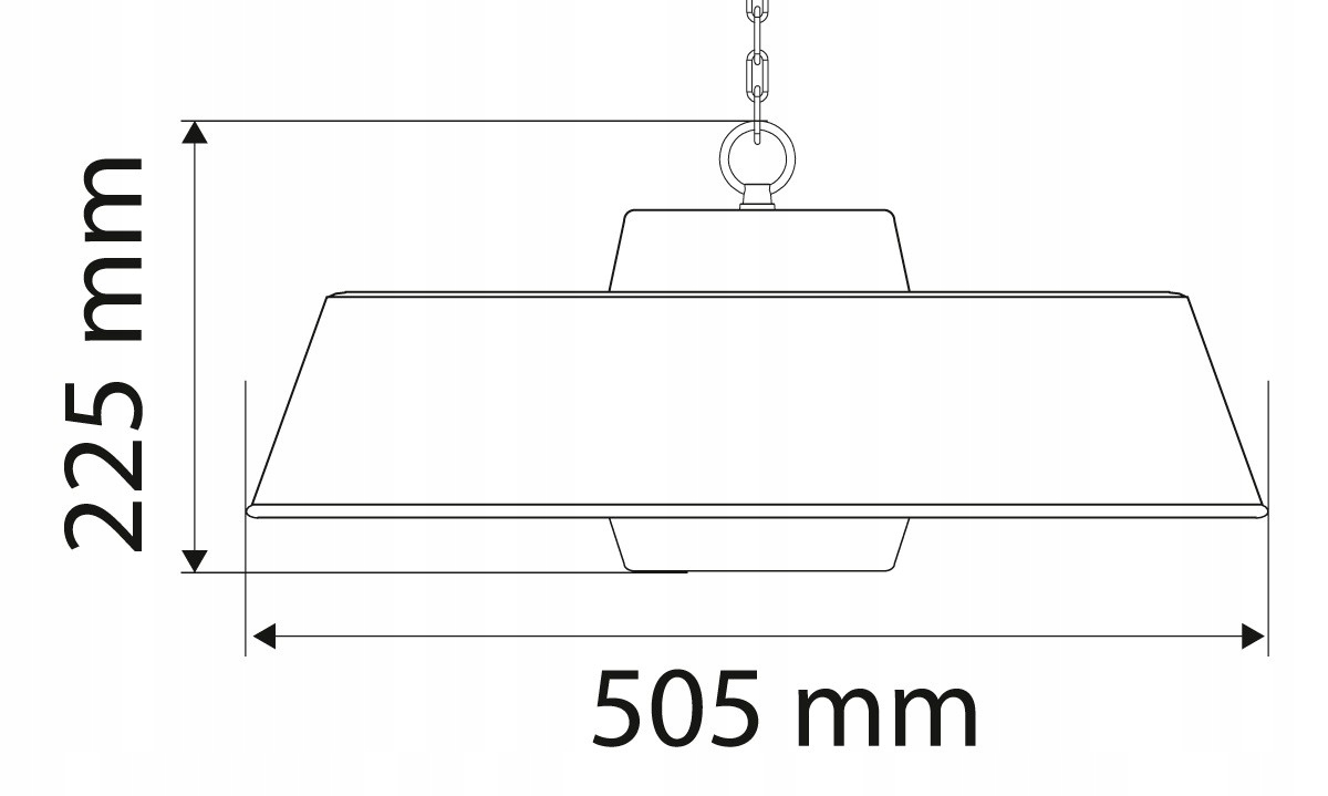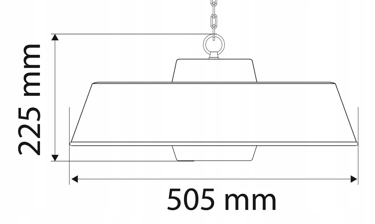 - Promiennik przeznaczony jest do użytkowania w formie wiszącej – oferowany z łańcuchem montażowym do podwieszenia na wysokości maksymalnie 5m.