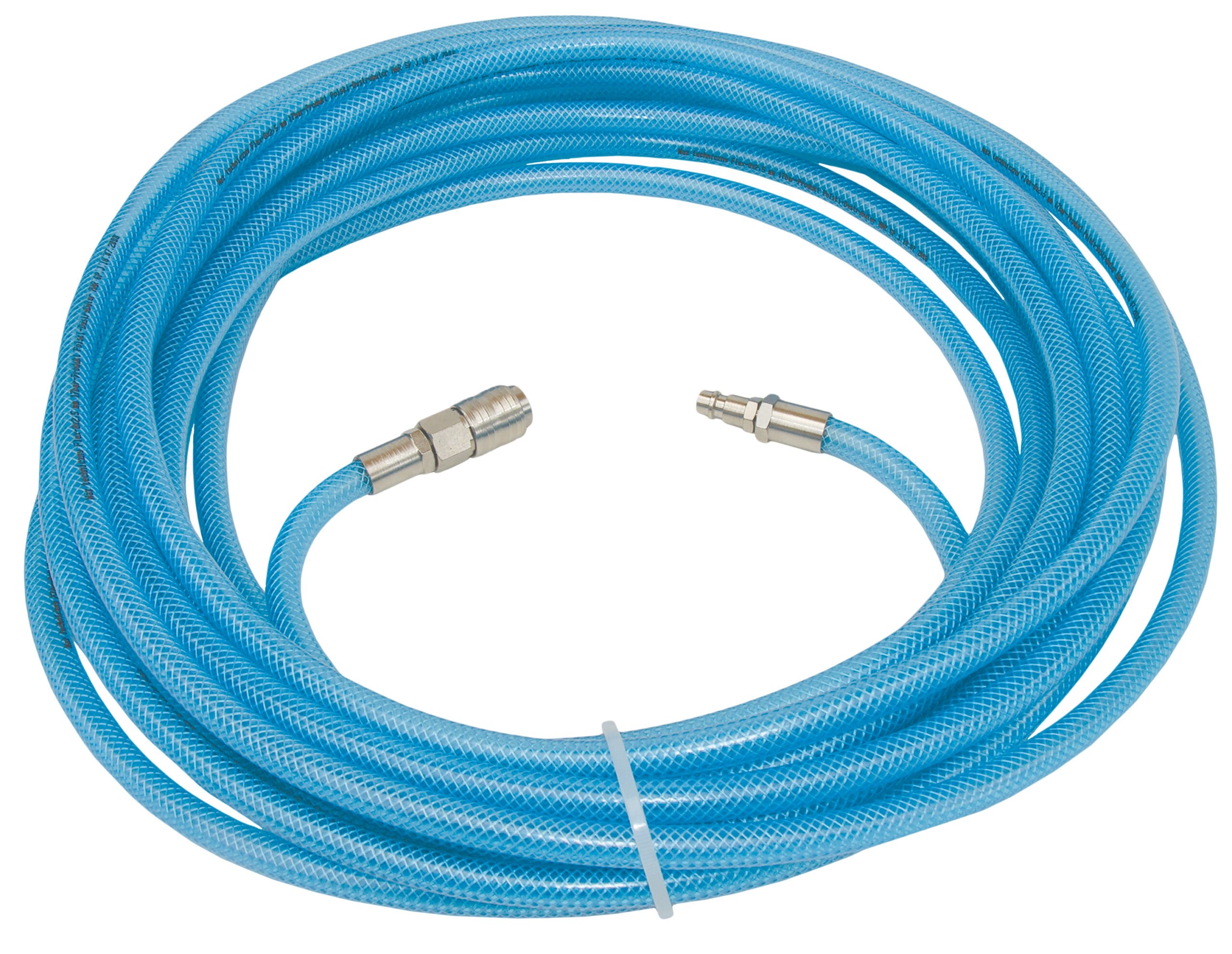 Przewód prosty z PCV, dwuwarstwowy, zbrojony tekstylnym oplotem. Przewód produkcji polskiej. Przewód okuty. Wysokiej jakości złącza zaciskowe produkcji włoskiej. Polichlorek winylu – przewody średnio twarde, często kilkuwarstwowe, dodatkowo zbrojone tekstylnymi oplotami wzmacniającymi. Występują jako przewody proste używane jako instalacyjne, do pracy z narzędziami pneumatycznymi także na zwijadłach. Dane techniczne: Kod: 0142.53 Średnica wewnętrzna przewodu: 10mm Grubość ścianki: 2,5mm Długość przewodu: 20m Złacza: Stalowe, uniwersalne Materiał: Polichlorek winylu – PCV Typ przewodu: Dwuwarstwowy Zbrojenie: Tekstylny oplot Ciśnienie pracy: 15 bar Przeznaczenie: sprężone powietrze, woda