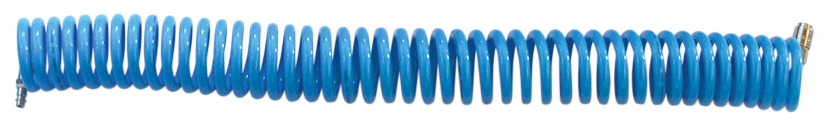 Przewody spiralne PU ze złączkami dzięki okuciu w uniwersalną szybkozłączkę i złączkę są natychmiast gotowe do pracy. Podana długość jest całkowitą długością prostego przewodu przed ukształtowaniem spirali. Należy o tym pamiętać przy wyborze długości węża. Poliuretan – przewody z niego wykonane charakteryzują się największą elastycznością i odpornością mechaniczną (zginanie, zgniatanie). Najlepsze do pracy z narzędziami pneumatycznymi, jako przewody spiralne oraz w zwijadłach. Dane techniczne: Kod: 0140.96 Średnica przewodu: 16 x 10mm Długość przewodu: 15m Materiał: Poliuretan – PU Złącza: Stalowe, uniwersalne Przeznaczenie: sprężone powietrze *Ciśnienie pracy/ciśnienie rozrywające: 10/37bar **Wytrzymałość temperaturowa: -20oC do 60oC *Ciśnienie pracy i rozrywania kalkulowane są przy temperaturze 20oC Spadek wytrzymałości cisnieniowej przey wzroście temperatury: 20oC 30oC 40oC 50oC 60oC 100% 83% 72% 64% 57%